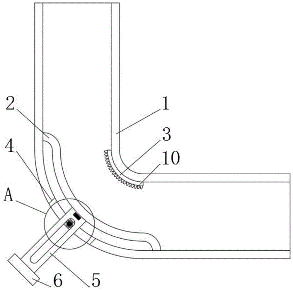 5.根據(jù)權(quán)利要求1所述的一種不易阻塞的不銹鋼管件彎頭,其特征在于:所述清洗墊(3)靠近橡膠保護(hù)墊(2)的一端固定連接有多個(gè)均勻分布的清洗齒(10)。